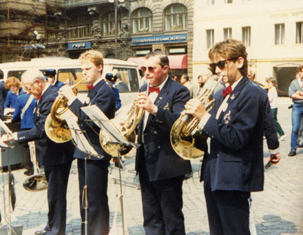 Ook bleef Rutger trompet spelen bij verschillende orkesten en bij het Veldhovens Muziekkorps, ook wel 'de Harmonie' genoemd. Elke maandagavond was hij van de partij bij de repetities in café 'D'Ouwe Loop'. Ze speelden op muziekconcoursen, maar traden ook op bij feesten en evenementen (in pak). Hoogtepunt was toch wel dat zij de Paus in 1985 op het vliegveld van Eindhoven mochten verwelkomen. Rutger was 13 en stond helemaal vooraan bij het hek, met zijn cornet en nieuwe schoenen van de Bata. Hij was één van de weinigen die de Paus van heel dichtbij zou gaan zien. Maar helaas stak de voorzitter van de Harmonie daar een stokje voor want een paar minuten voor het optreden plukte hij Rutger van de voorste rij en plaatste hem middenin de groep 'omdat zijn schoenen daar tenminste niet opvielen'. Die waren volgens hem 'niet netjes genoeg'.